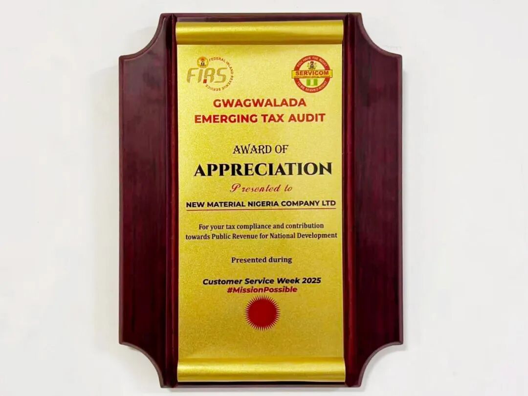 近日,中建材尼日利亚在尼日利亚2025年度税收评选中荣获“税收合规与国家发展公共收入贡献奖”。作为尼日利亚建材行业领军企业,公司始终坚持以合规理念助力尼日利亚当地发展。此次获奖是公司坚持合规经营强有力的体现,也是当地对公司税务管理的权威认可。