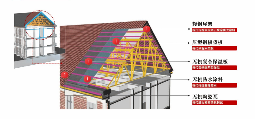在近70年的老旧小区改造中,中国建材集团发挥产业链优势,统筹所属北新建材、国检集团等十余家专业企业,形成覆盖设计、材料、施工、检测的全链条解决方案。针对大屋脊结构消防隐患与功能缺陷,中国新材院、咸阳陶瓷院设计轻钢屋架体系,提升耐久性与抗震性能;北新灯塔更新产品设计,将防火涂料从耐火极限的2 青青草影视高清,5小时,提高到4,5小时,全面提高轻钢屋架体系的耐火极限;中岩科技、山东工陶院提供A级无机保温材料,实现防火保温双升级;江西中材研发发泡陶瓷防火隔离带,构建多层防护体系;北新防水、水泥新材院分别通过耐热防水卷材、无机复合防水材料,实现防水防火的双升级;国检集团与中存大数据,打造智慧监测系统,提升居住安全性;咸阳陶瓷院推出高吸水率A级防火陶瓷瓦,兼顾实用与美观。该综合解决方案推动木质大屋脊向“不燃、耐久、绿色、节能”现代屋顶系统转型,相关技术已在2025年11月北京鸟巢消防技术交流展中亮相,为全国同类项目提供可推广应用路径。。