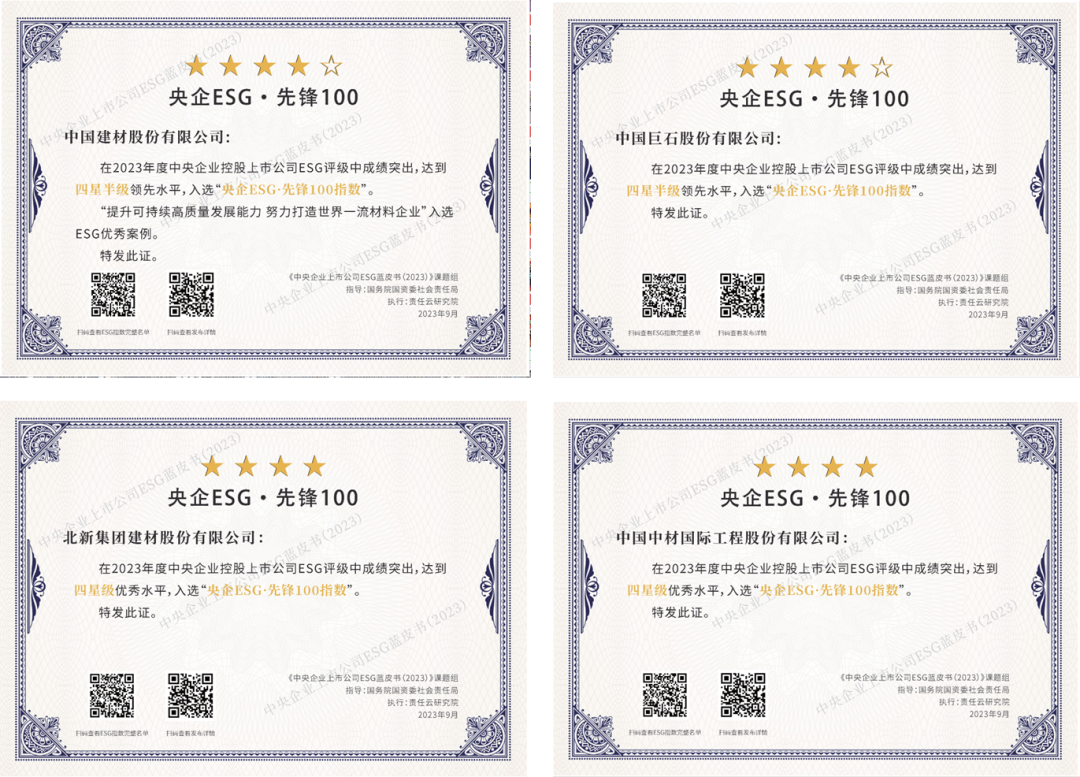 近日 青青草影视高清,《中央企业上市公司ESG蓝皮书(2023)》及“央企ESG·先锋100指数”榜单发布,集团所属4家上市公司中国建材股份,中国巨石,北新建材和中材国际入选了“央企ESG·先锋100指数”,分别位于第33位,第39位,第87位以及第92位,ESG表现均处于四星级水平以上,是上市公司ESG发展的领先者,中国建材股份案例《提升可持续高质量发展能力 努力打造世界一流材料企业》入选了《中央企业上市公司ESG蓝皮书(2023)》。