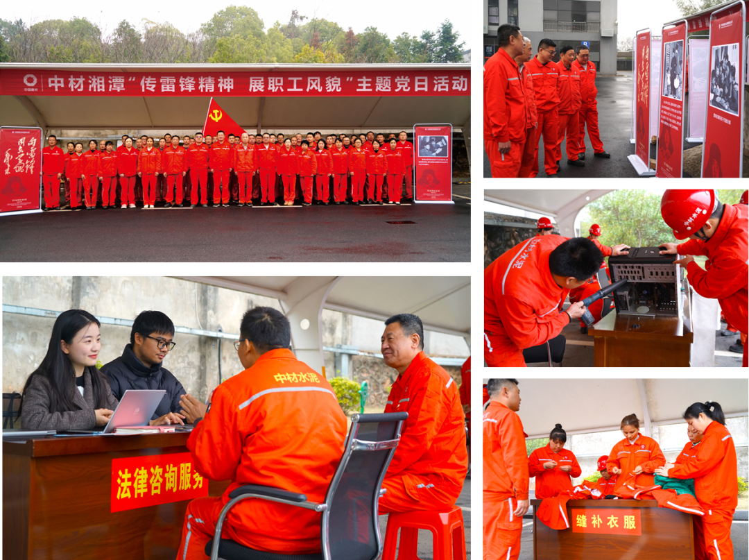中材湘潭党总支组织开展“传雷锋精神 展职工风貌”主题党日活动 青青草视频,活动以提高员工艰苦朴素作风,增强法治思想,强化节约意识为主题,开展免费法律咨询,缝补衣物,维修办公家具,维修小电器等服务项目,实实在在为职工群众办实事,暖心事。